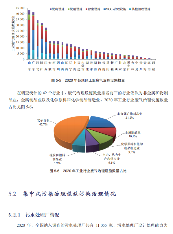 日前,生态环境部发布《2020年中国生态环境统计年报》,环境商会摘取污染治理设施、生态环境污染治理投资及******产业情况三部分内容,供参考。